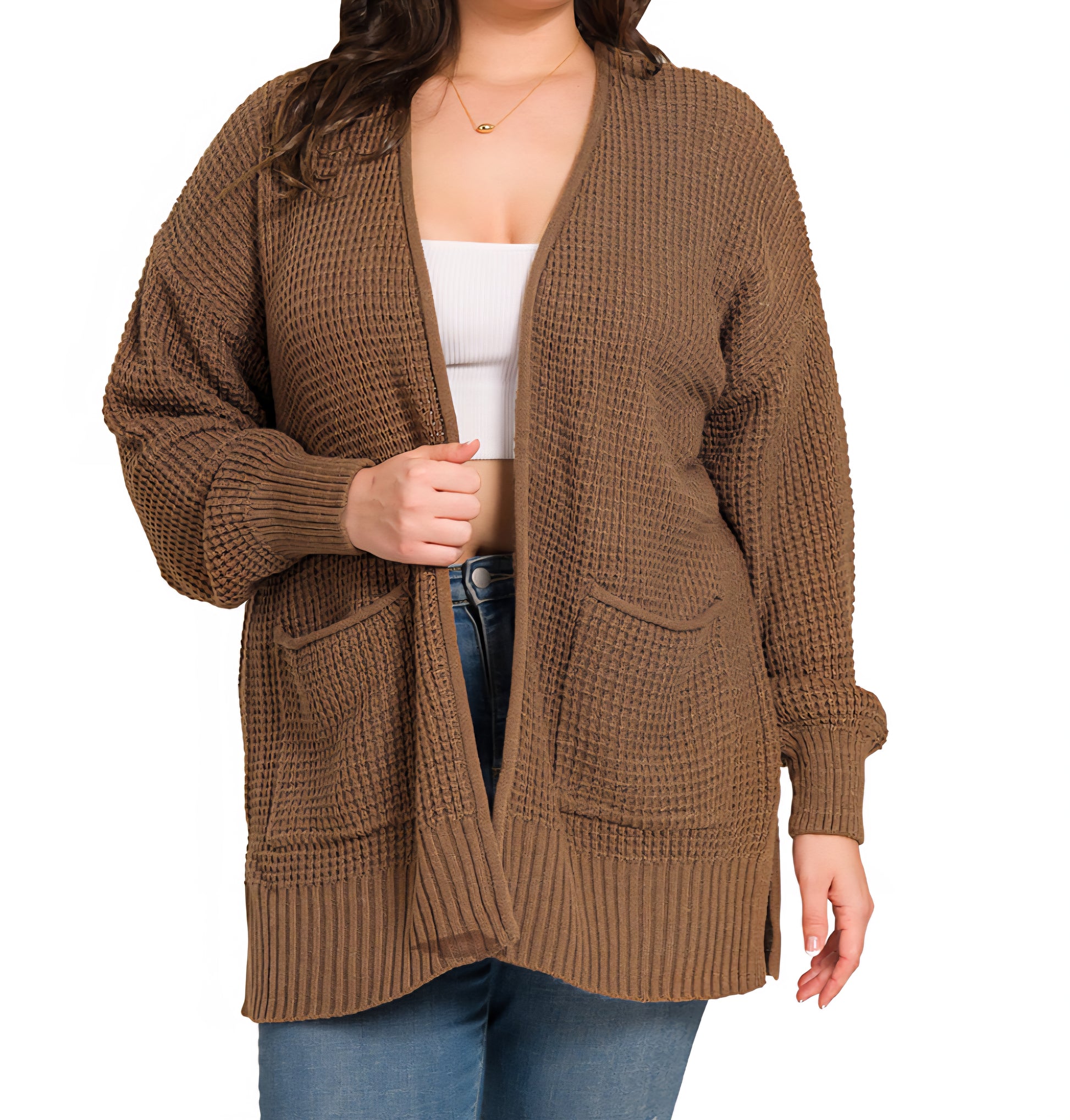 PLUS WAFFLE OPEN CARDIGAN (BROWN)